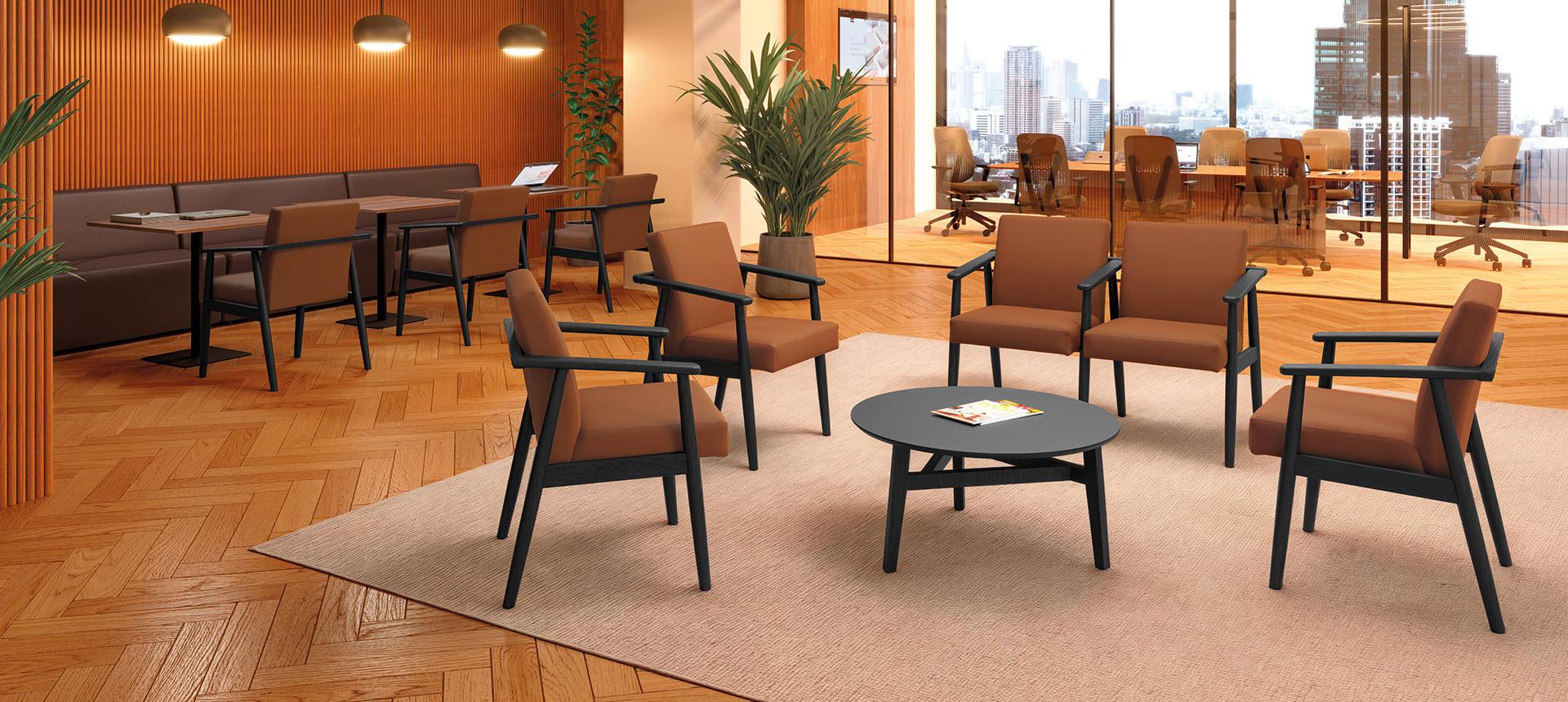 Disponível também como longarina e acompanhada de mesa de centro, Rimeva é a solução que transforma qualquer ambiente com sua simplicidade refinada e presença marcante.