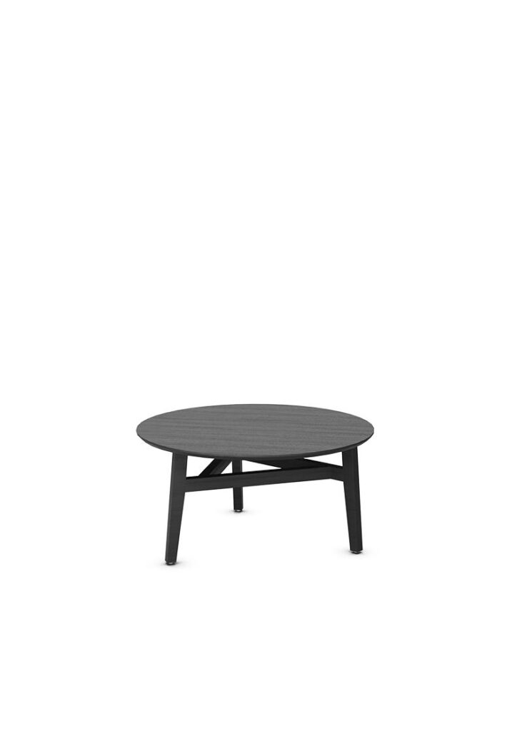 Tampo em MDF de 19 mm e estrutura em madeira maciça de eucalipto, com acabamento envernizado ou ebanizado. Possui suportes em aço, sapatas em polímero e componentes metálicos com tratamento anticorrosivo e pintura eletrostática, garantindo resistência, durabilidade e sofisticação no acabamento.