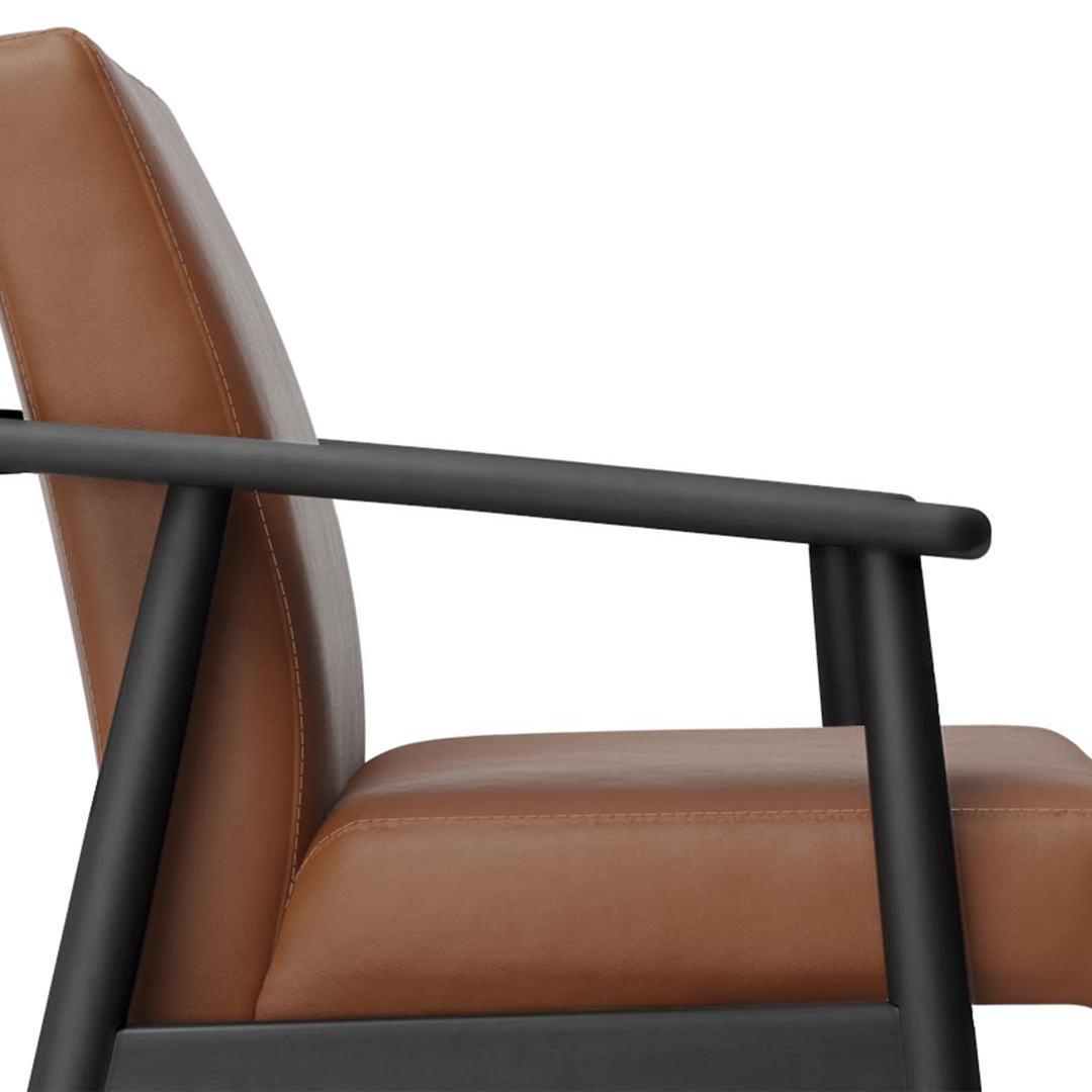 Encosto com estrutura reforçada em madeira e aço, aliado a camadas de espuma em diferentes densidades que garantem resistência, conforto e ergonomia.