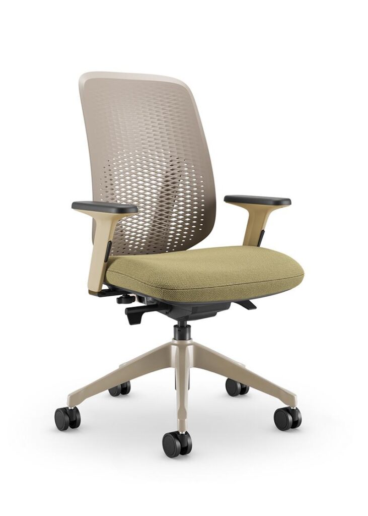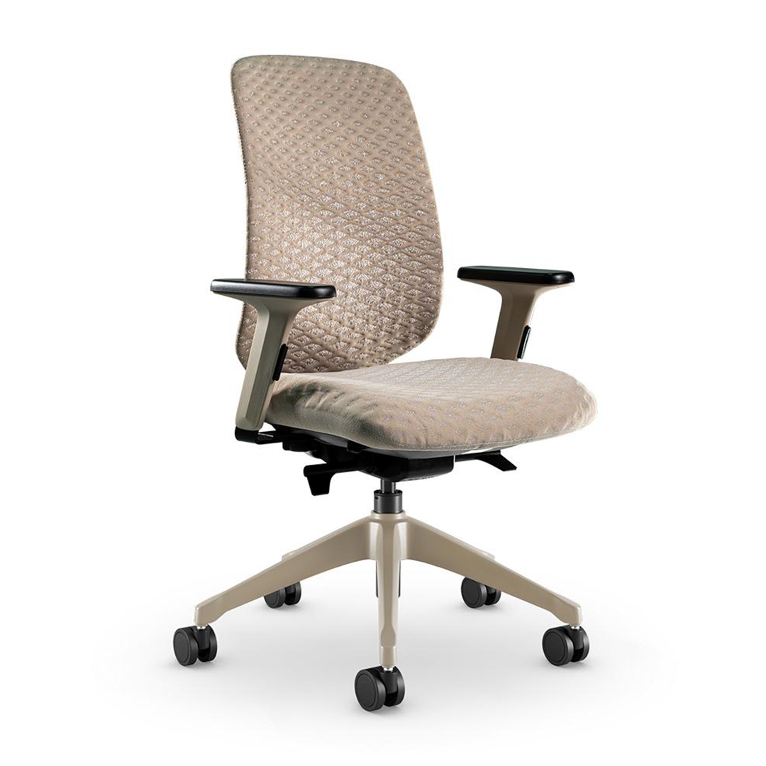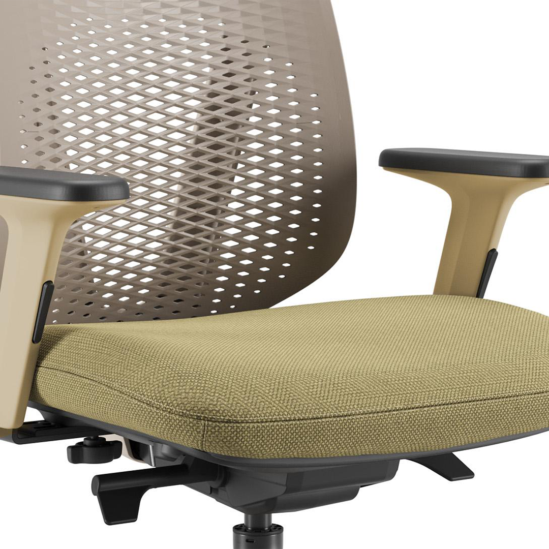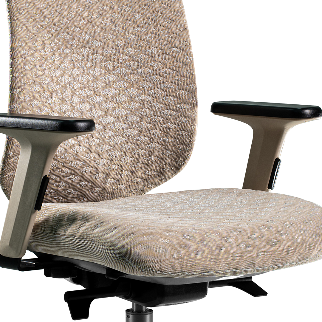 • Syncron Autoajustável / Braço INC / Base UP 65 / Mocca – Lâmina Latte Macchiato 127 e Assento Grid Bege Marfim 360