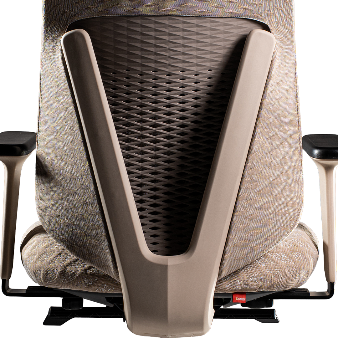 Personalizar a Cavaletti Artis é uma expressão de estilo e identidade. O encosto, disponível em lâminas plásticas coloridas, tecido ou revestido Tramma, ganha ainda mais destaque quando combinado com a estrutura do encosto em uma tonalidade contrastante.